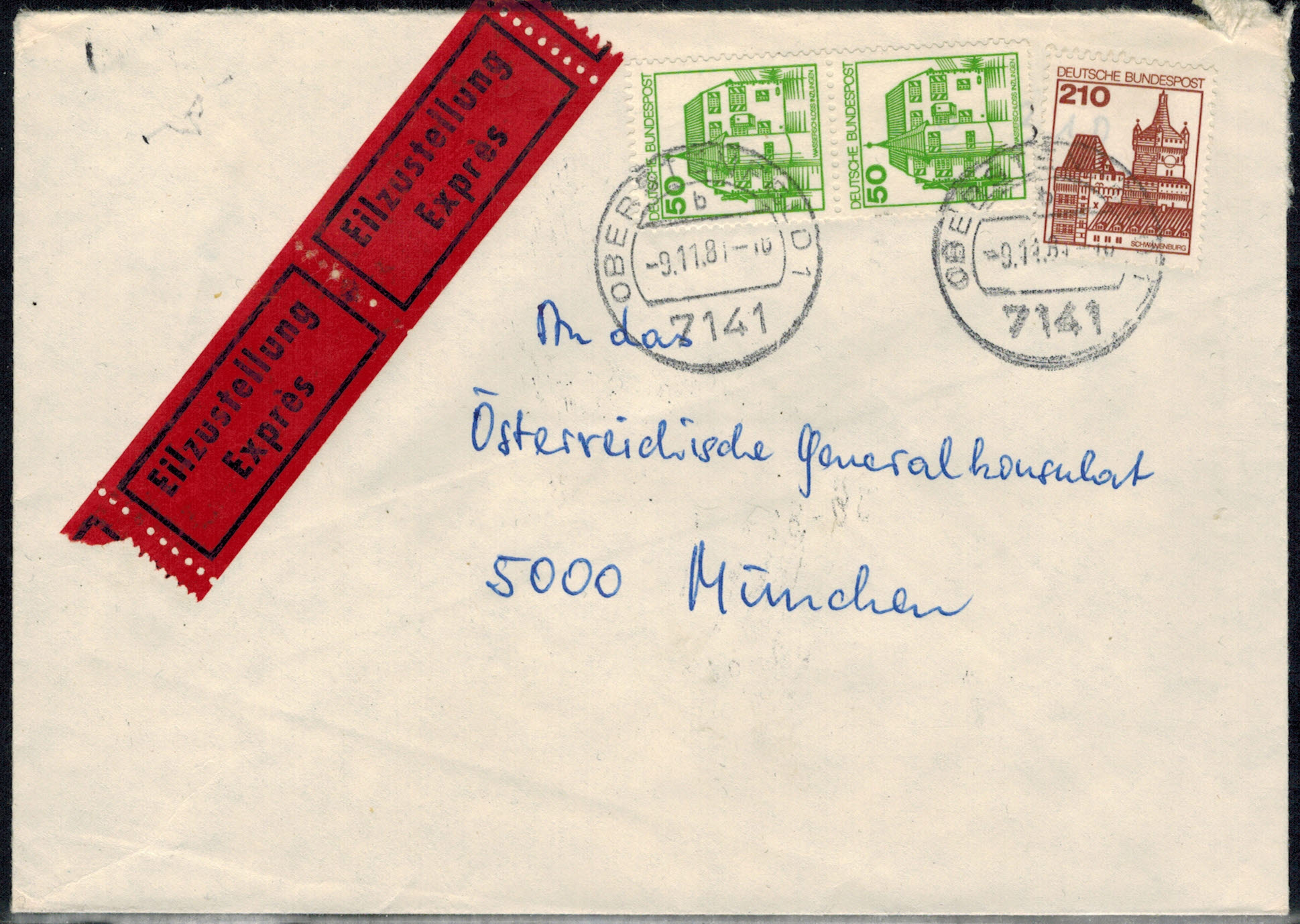 Bund 0998 MiF auf portogerechtem Eilzustellungsbrief