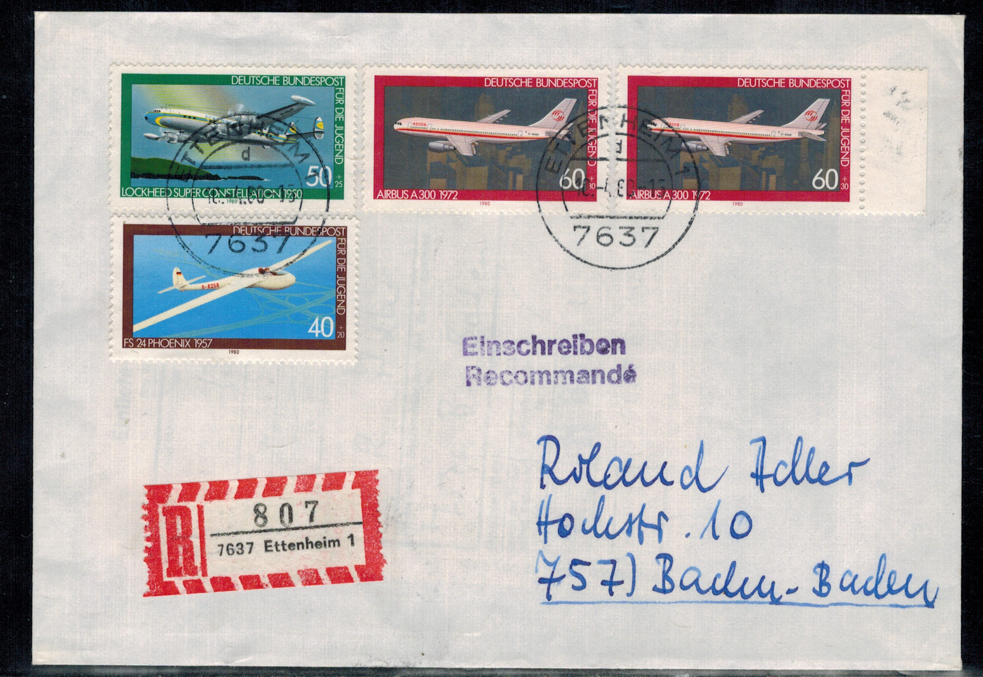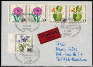 Bund 1005 – 1007 als MiF auf portogerechtem Einschreibenbrief !