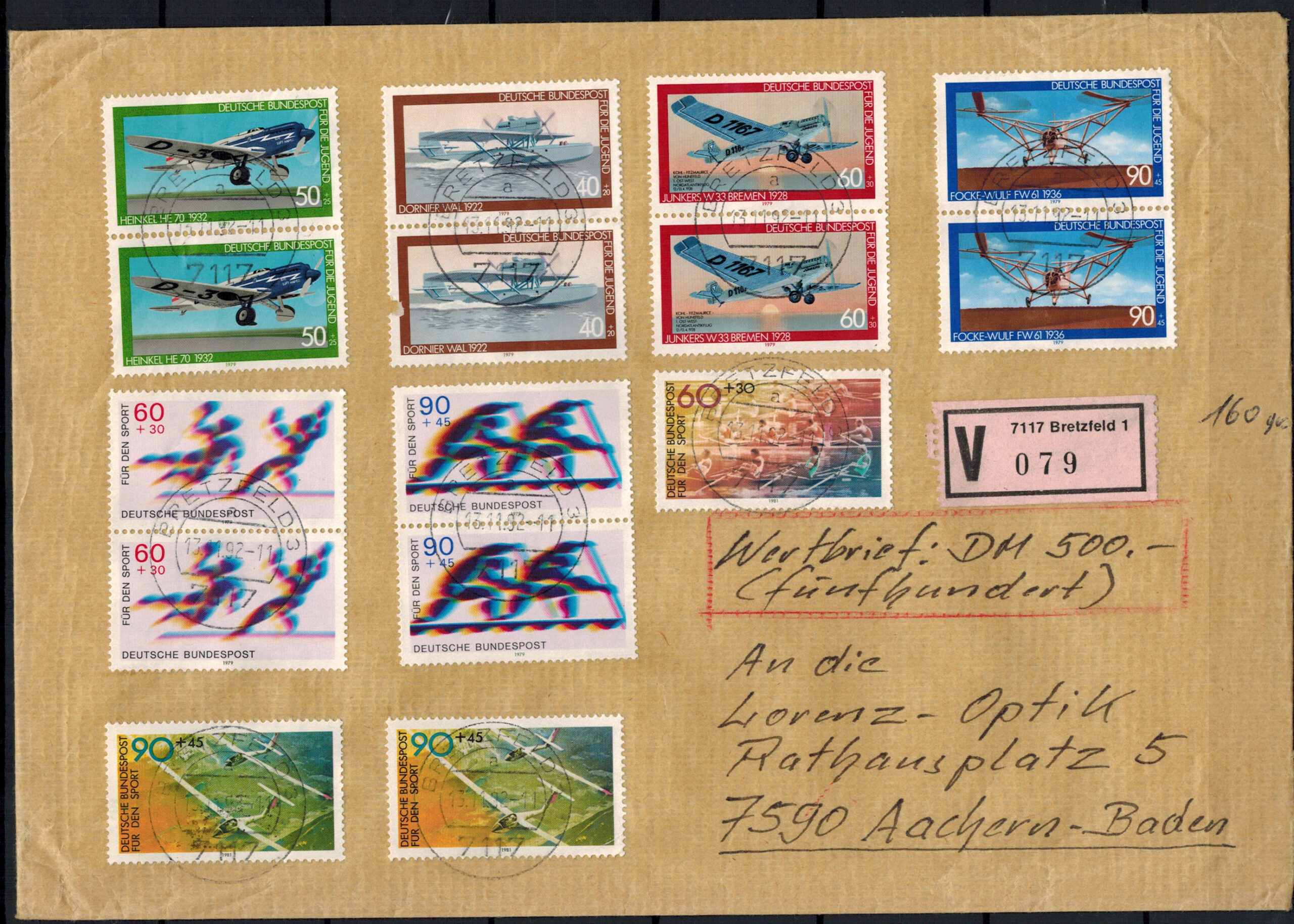 Bund 1005 + 1008 kompletter Satz als MiF auf portogerechtem Wertbrief
