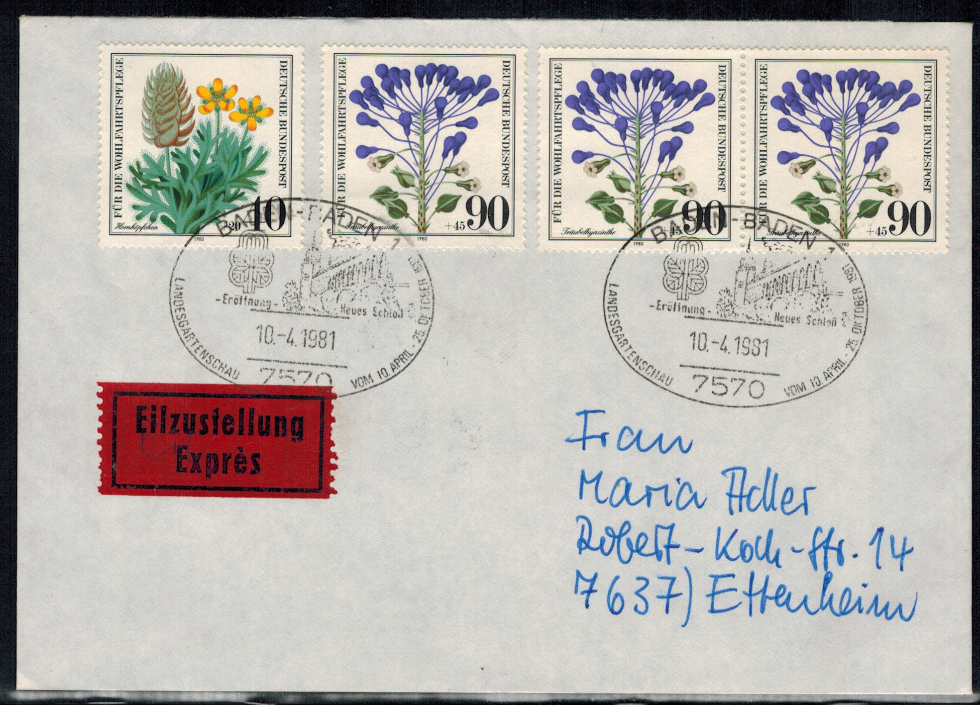 Bund 1062 waagr. Paar + EZM als MiF auf portogerechtem Eilzustellungsbrief !