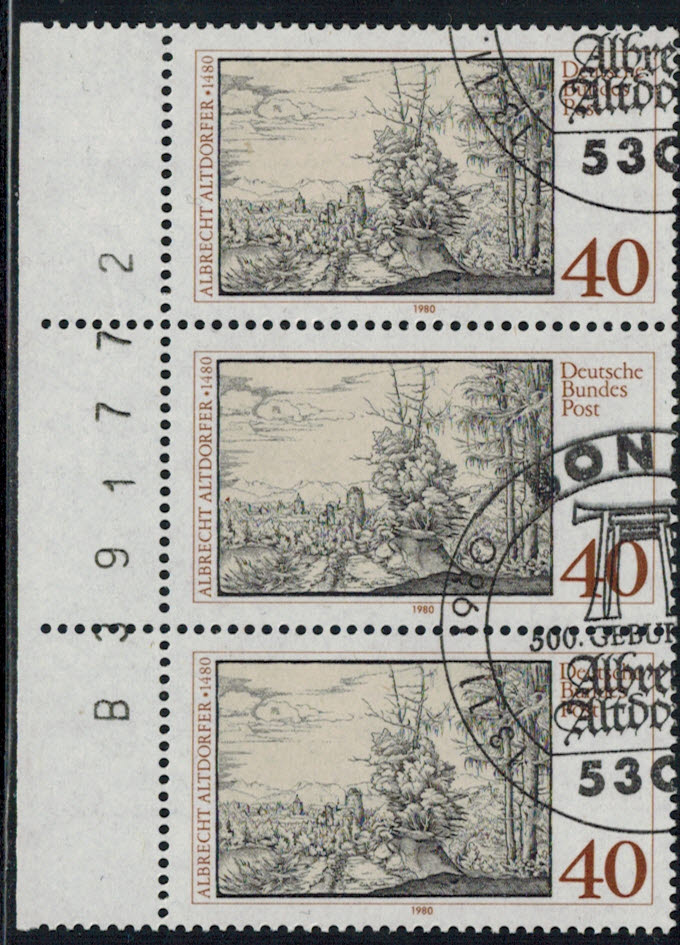 Bund 1067 3-er Block Seitenrand links mit BZN n.i. ESST ! Menge