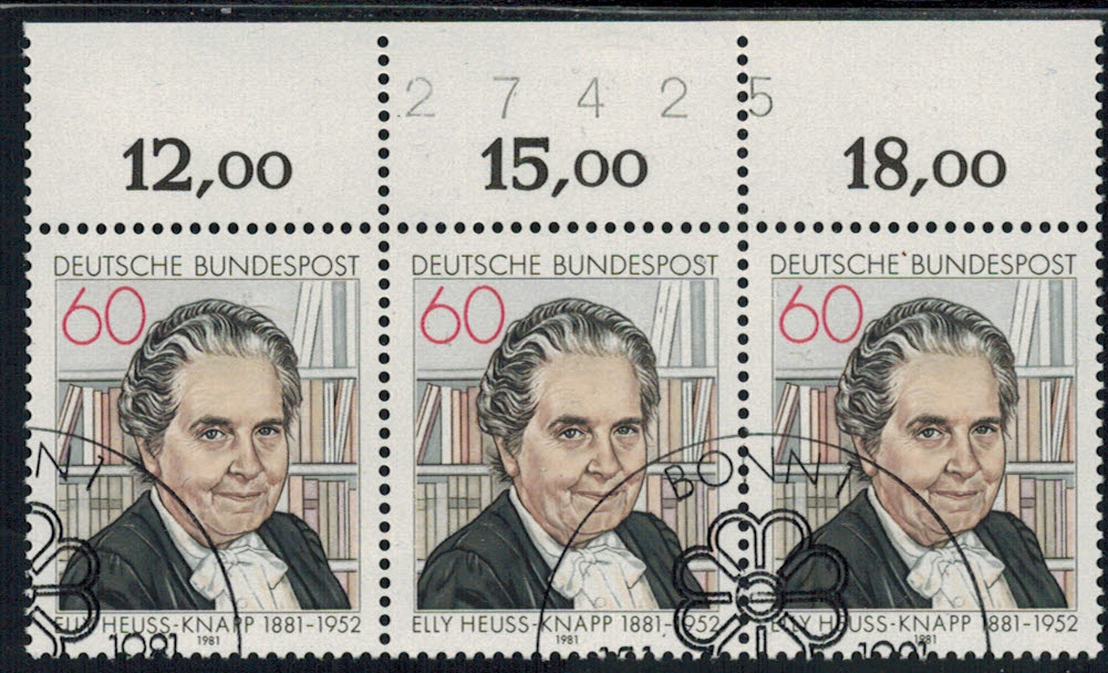 Bund 1082 3-er Block Oberrand mit BZN n.i. ESST ! Menge