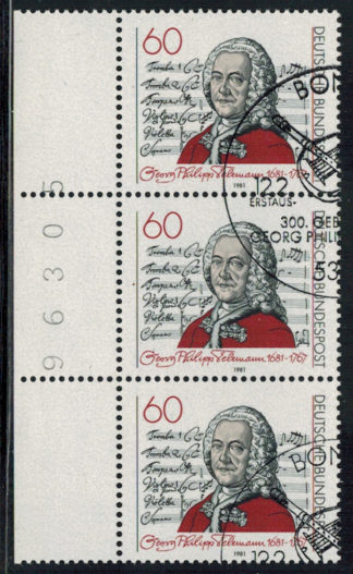 Bund 1104 3-er Block Seitenrand links mit BZN n.i. ESST !
