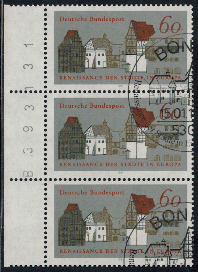 Bund 1084 3-er Block Seitenrand links mit BZN n.i. ESST ! Menge