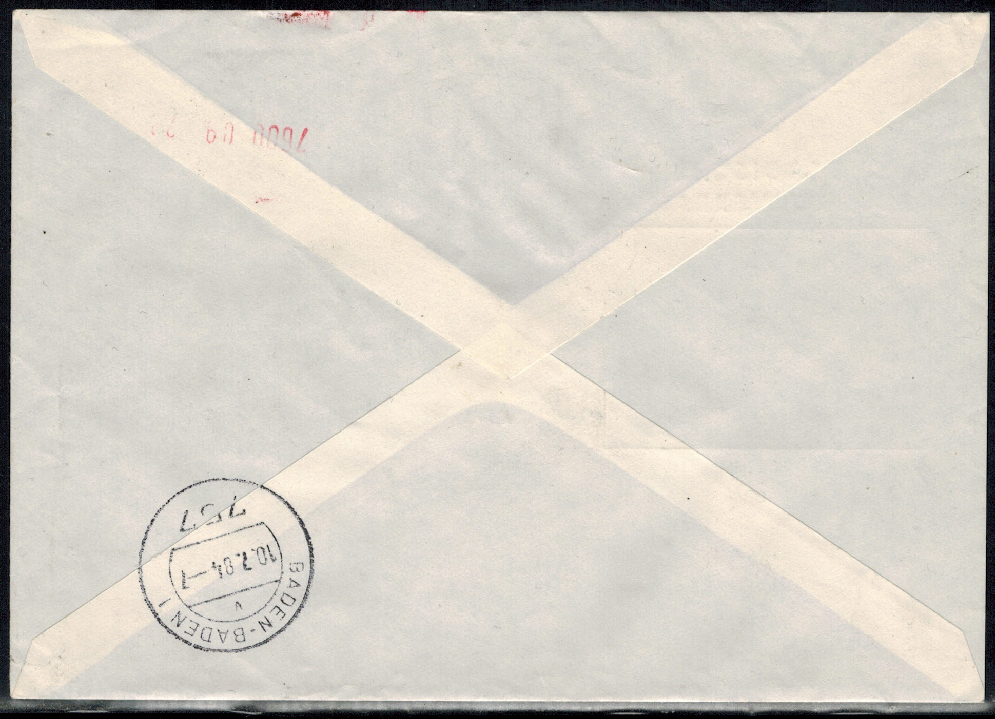 Bund 0489 4-er Block als MiF auf portogerechtem Eilzustellungsbrief in die CSSR !!