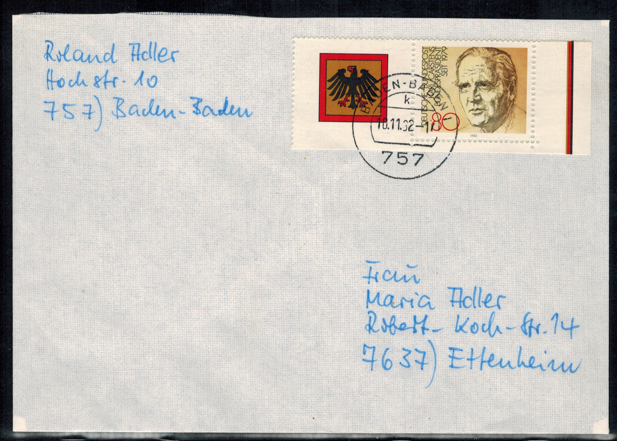 Bund 1160 mit Zierfeld als EF auf portogerechtem Brief