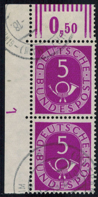 Bund 125 Or I ER – Paar l.o. „gebrochenes“ DZ 1 L2a gestempelt, kleine Nullen !