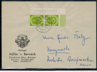 Bund 124 Ecke links oben mit Zusatzfrankatur auf wunderschönem portogerechtem Luftpostbrief !! Brief von Hannover nach Berlin, Sonderstempel “ 07.3.54-16″. Außergewöhnlich schöner Beleg !