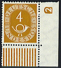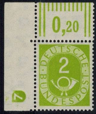 Bund 124 ER r.u. DZ 2. Ungefaltetes Stück mit Originalgummi. Im Unterrand spitzer Ausgleichzahn !