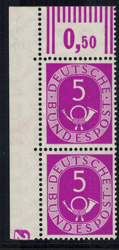 Bund 123 ER 2-er Block r.u. DZ 2 R10a gestempelt „Frankfurt 22.11.54“