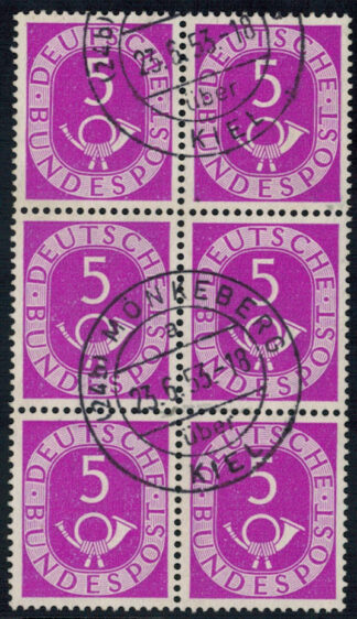 Bund 125 senkrechter 6-er Block gestempelt "(24b) MÖNKEBERG über KIEL" !!