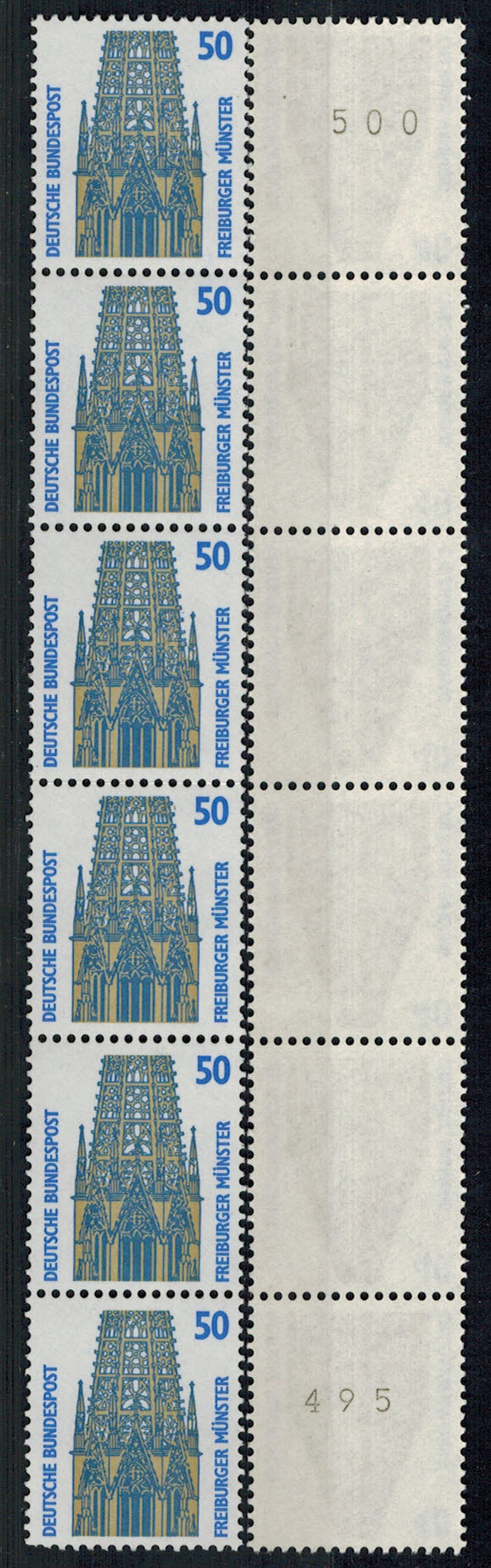 Bund 1340u 6-er Streifen Rollenanfang aus 500-er Rolle