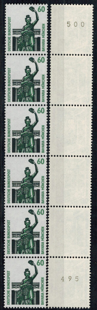 Bund 1341u 6-er Streifen Rollenanfang aus 500-er Rolle