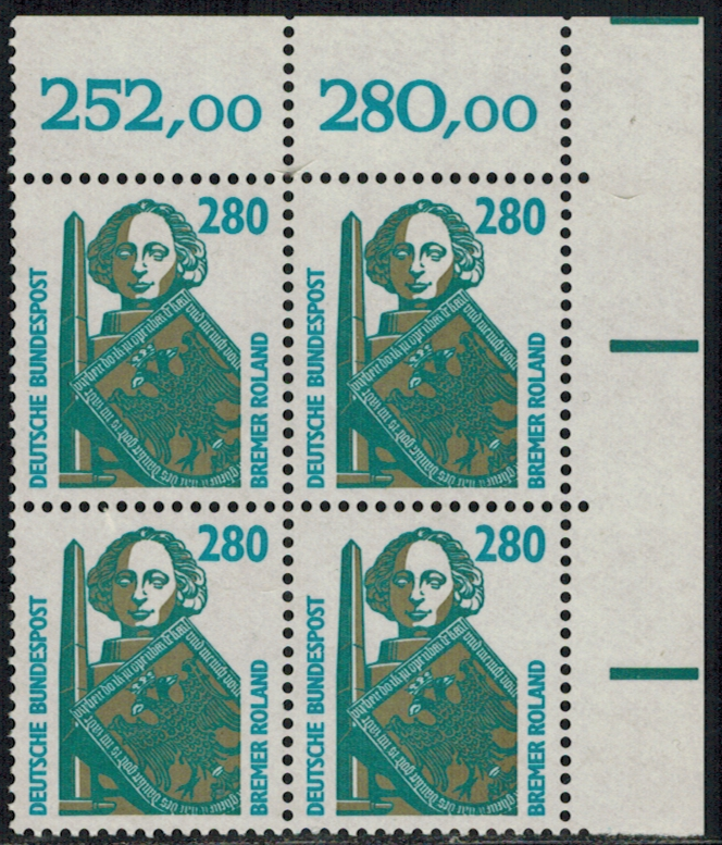 Bund 1381 ER 4-er Block rechts oben postfrisch, unbeschriftet !