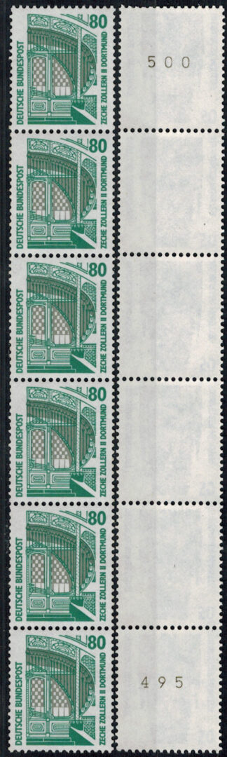 Bund 1348v I 6-er Streifen Rollenanfang aus 300-er Rolle
