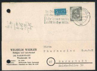 Bund 0141 auf Postkarte 1. Nationale Briefmarken – Ausstellung 1951 in Wuppertal !