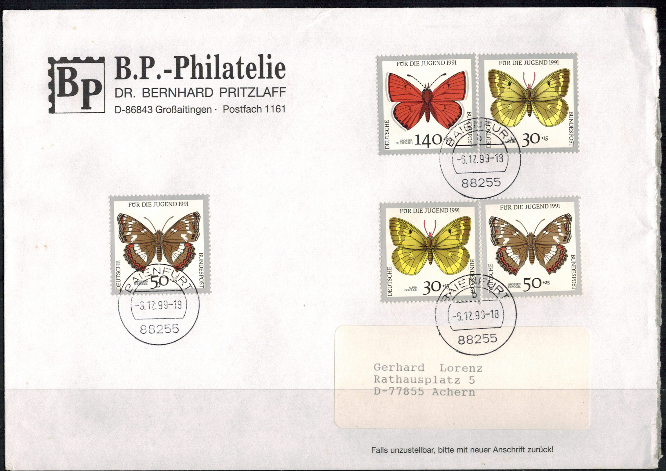 Bund 1. ATM „ohne Werteindruck“ + ein 4-er Block 1446 + ein OR-Paar 1446 + EZM 1611 auf Brief