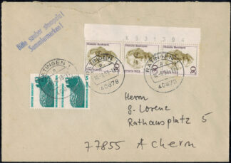 Bund 1488 3-er Randstreifen rechts mit Bogenzähler+1448 als waagrechtes Paar auf portorichtigem Brief