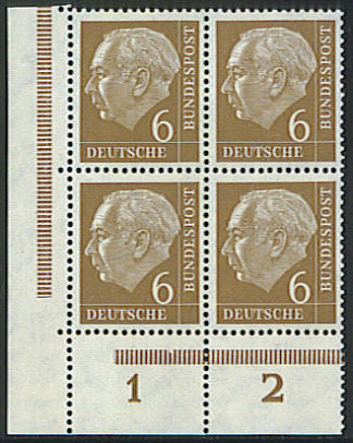 Bund 179 wP 4-er ER r.u., rechte Strichelleiste defekt, Rand nicht durchgummiert !
