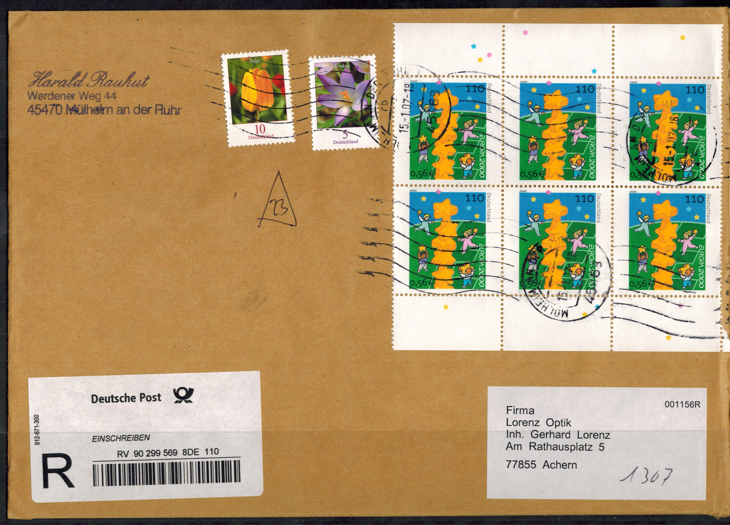 Bund 2113 als 6-er Block als MiF auf Übergabe-Einschreiben