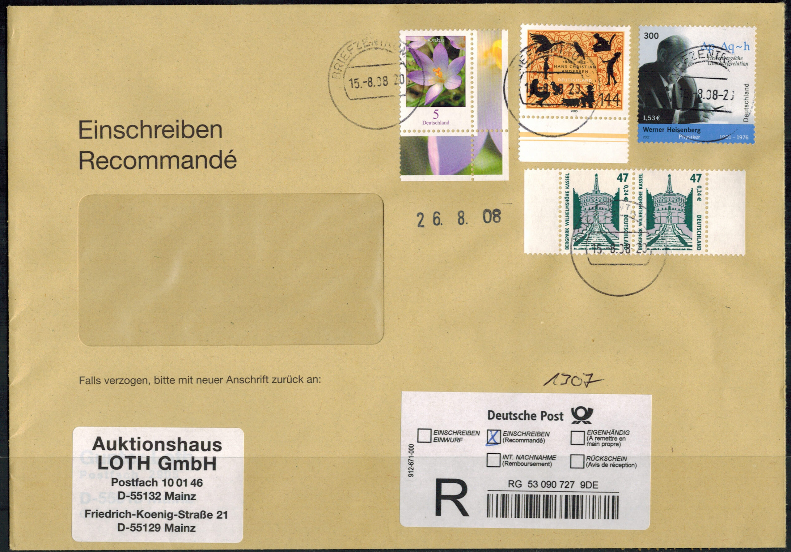 Bund 2176 waagr. SR-Paar als MiF auf portogerechtem Einschreibenbrief !