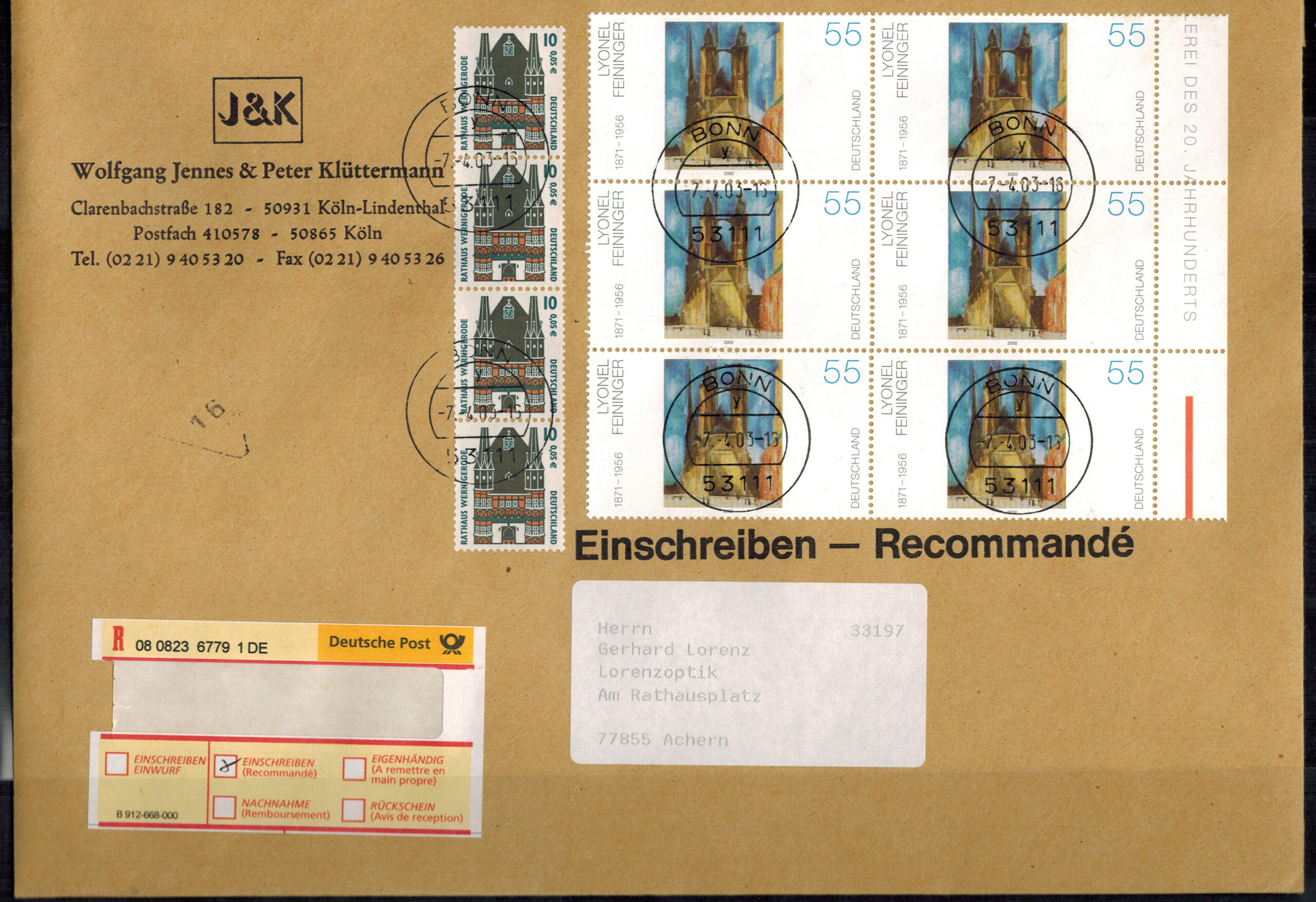 Bund 2294 6-er Block + 2187 senkr. 4-er Streifen als MiF auf Einschreibenbrief !