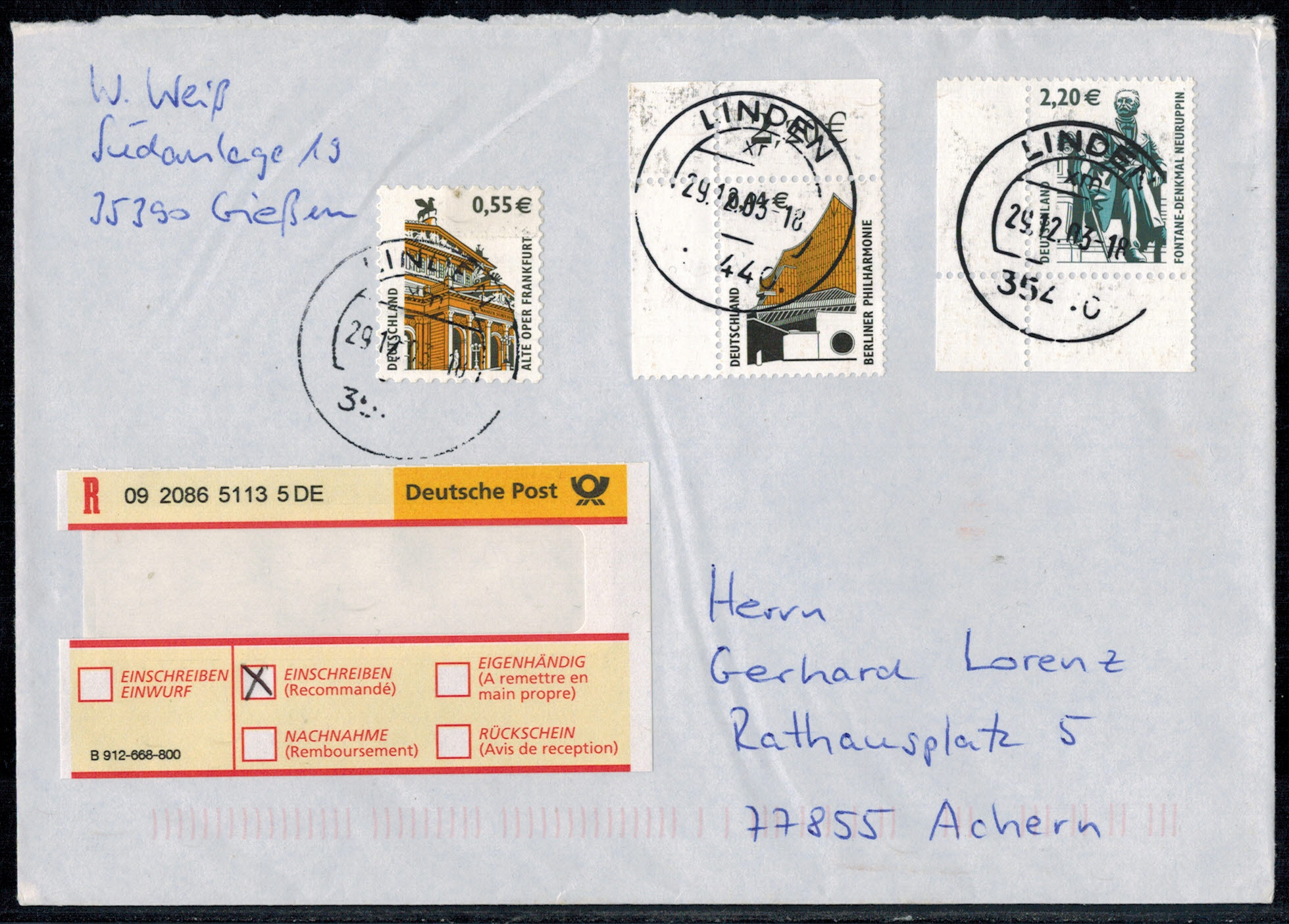 Bund 2307 Eckrand l.u. als MiF auf Einschreibenbrief !