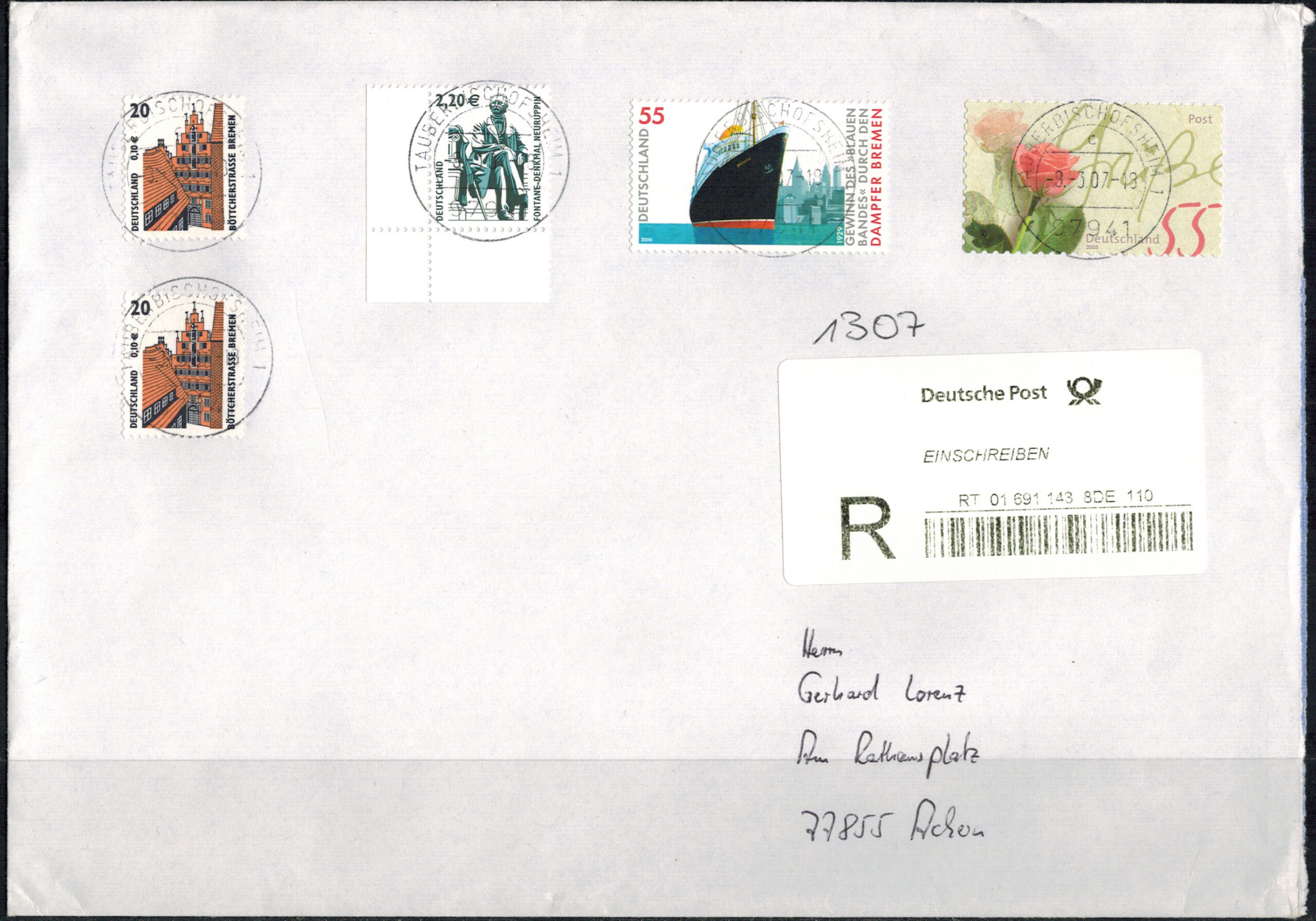 Bund 2307 ER-l.u. als MiF auf portogerechtem Einschreibenbrief !