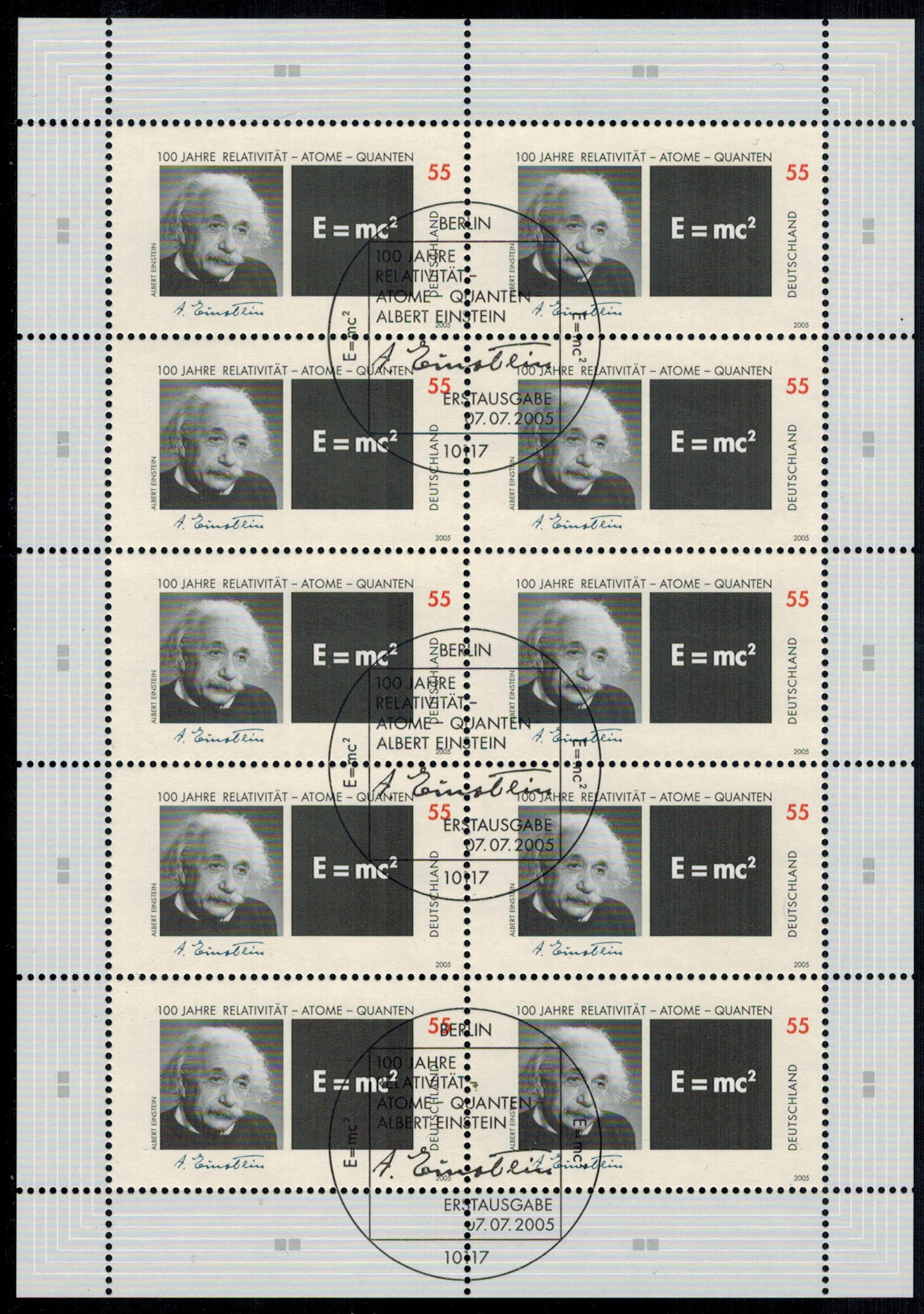 Bund 2475 10-er Bogen gestempelt mit „ESST Berlin 07.07.2005“
