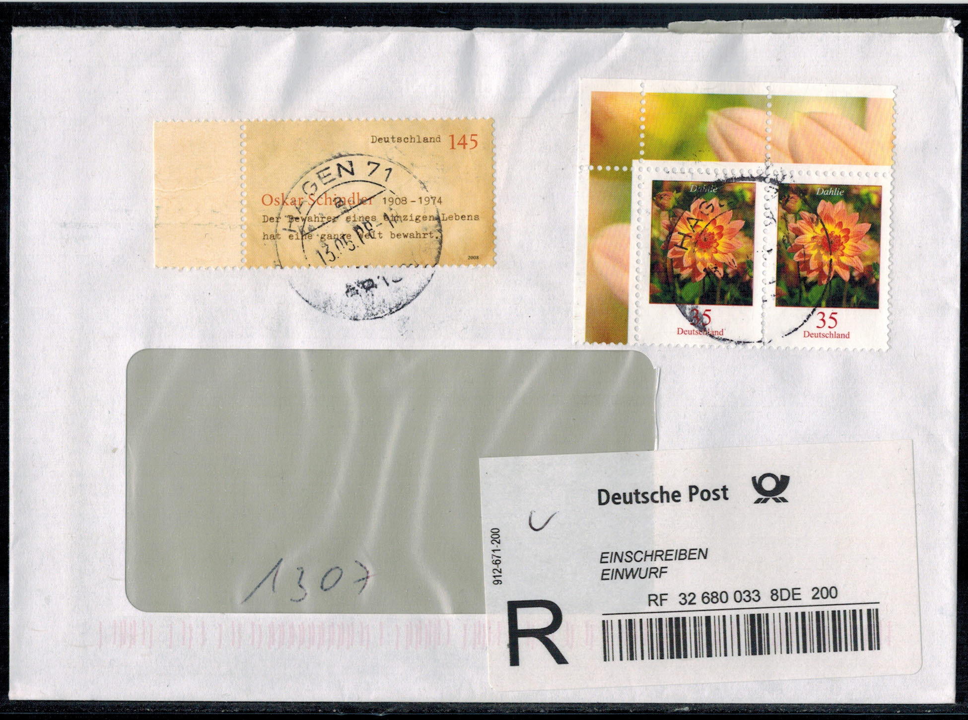 Bund 2505 Eckrandpaar l.o. als MiF auf Einschreibenbrief !