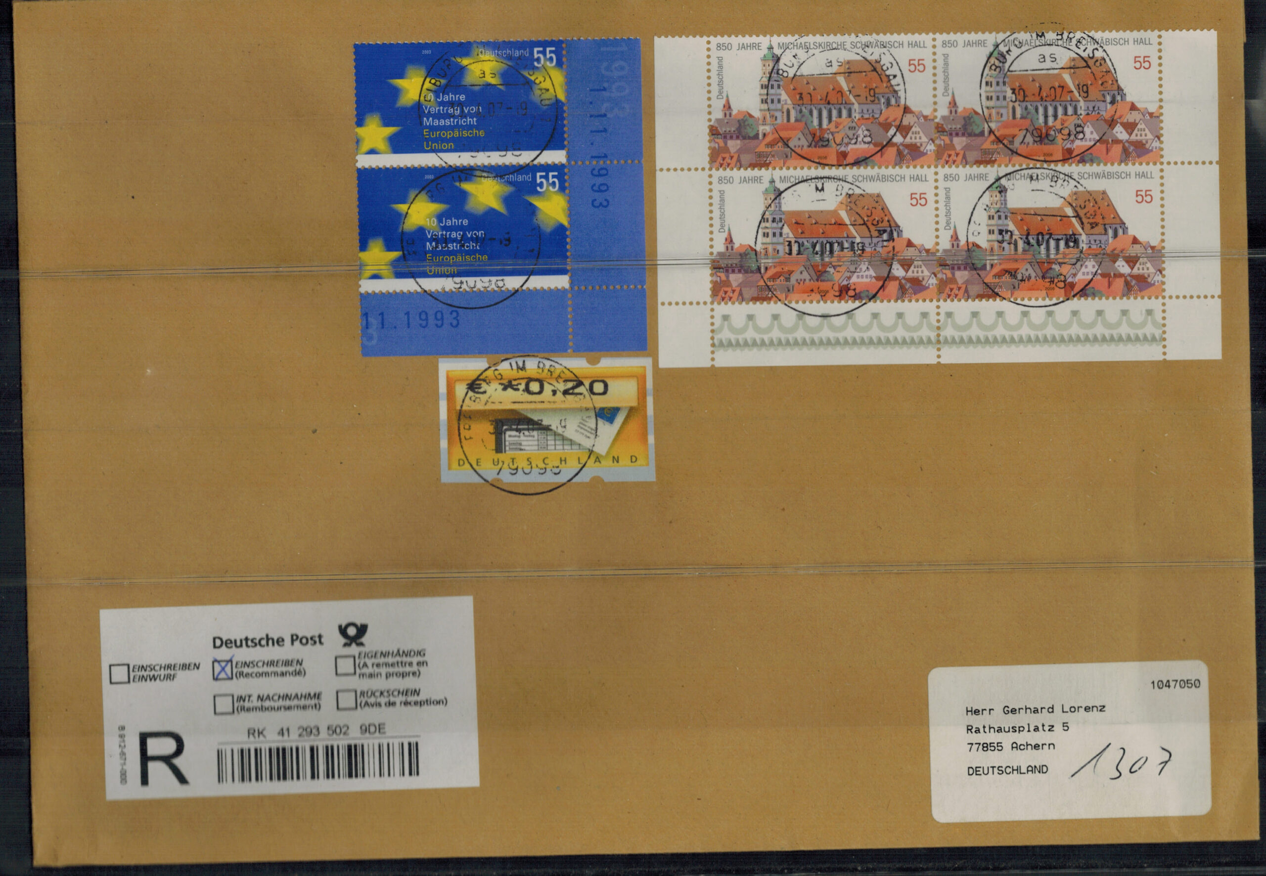 Bund 2522 ER-4-er Block unten als MiF auf portogerechtem Einschreibenbrief !