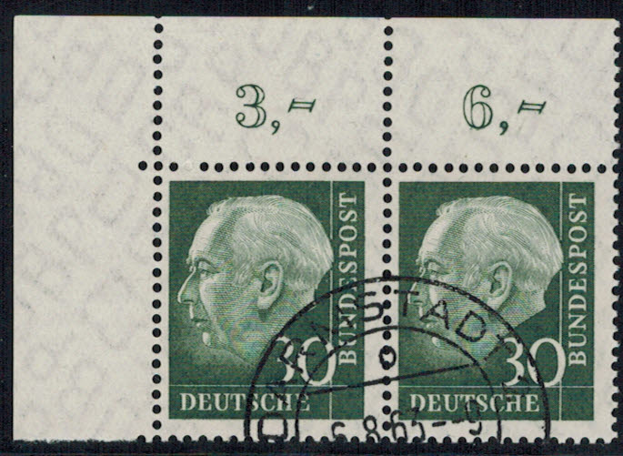 Bund 259 ER 2-er Block l.o. gestempelt „Darmstadt 6.8.63“ selten !!