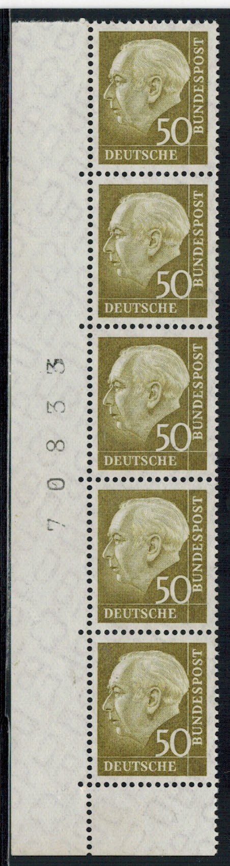 Bund 261x ER-5-er-Streifen l.u. mit BZN n.innen