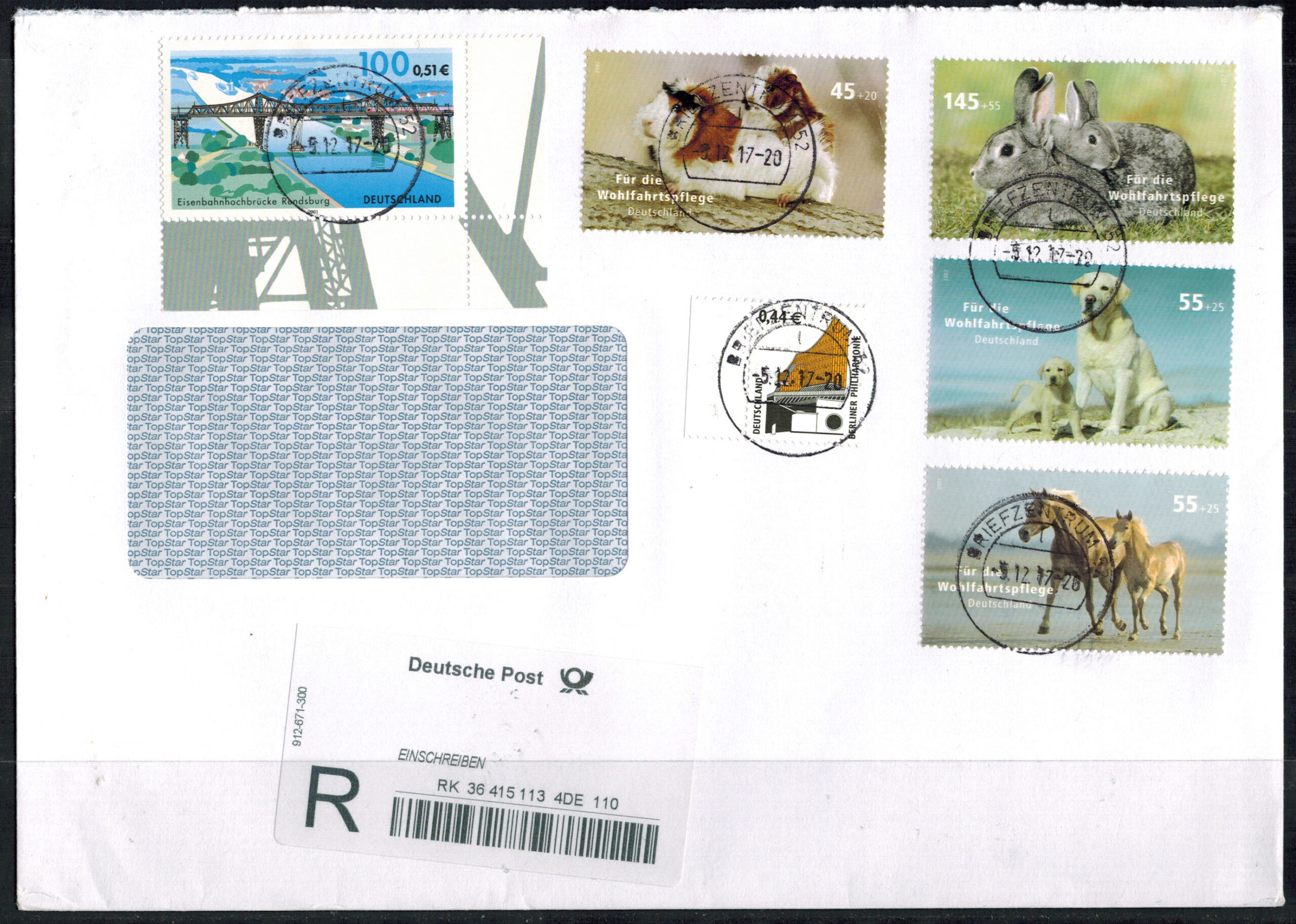 Bund 2630 – 2633 als Satzbrief mit 2178 + 2298 SR l. als MiF auf portogerechtem Einschreibenbrief !