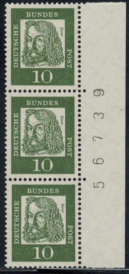 Bund 355y senkr. ER 3-er-Streifen links mit roter Bogenzählnummer n.innen !!!