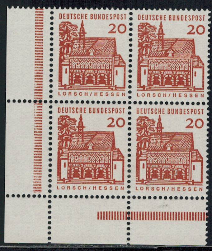 Bund 492 senkr. 4-er Block-Paar r. mit BZN nach innen