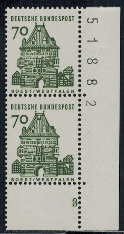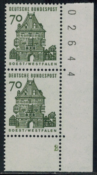 Bund 454 4-er Block-Paar r. mit BZN nach aussen