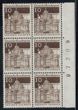 Bund 493 senkr. 6-er Block-Paar r. mit BZN nach innen