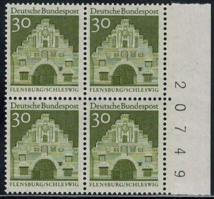 Bund 489 senkr. 4-er Block-Paar r. mit BZN nach innen