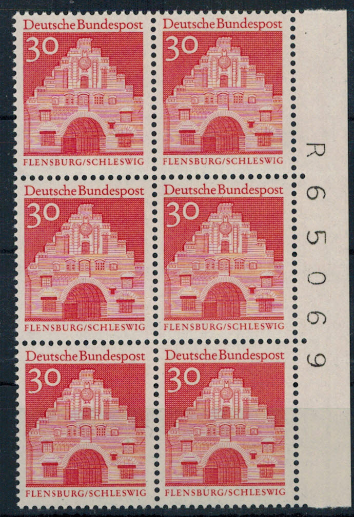 Bund 493 senkr. 6-er Block-Paar r. mit BZN nach innen