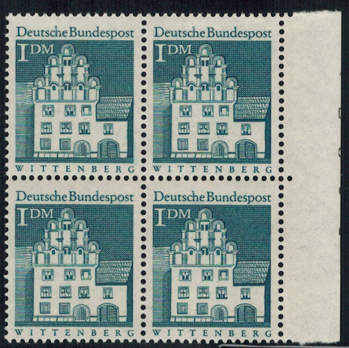 Bund 499 senkr. 4-er Block-Paar r. mit BZN nach aussen
