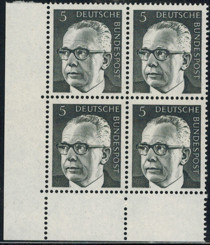 Bund 635 Eckrand 4-er Block links unten postfrisch