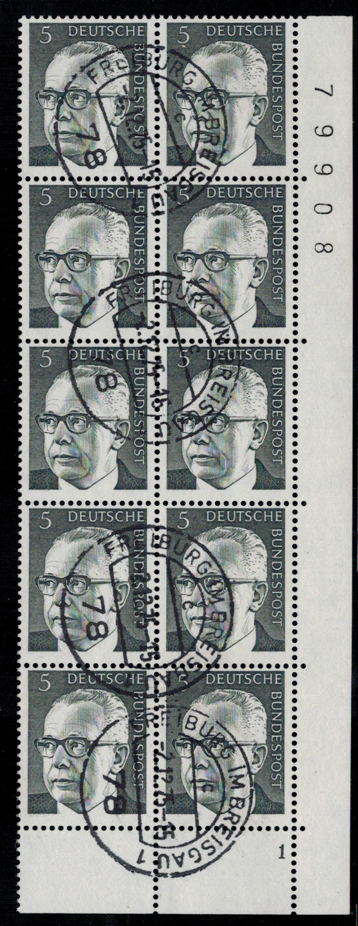 Bund 635 ER-10-er Block r.u. FN 1 + BZN gestempelt