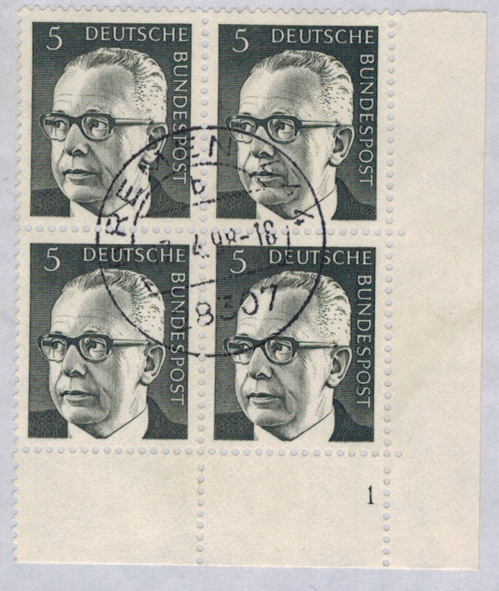 Bund 635 ER-4-er Block r.u. FN 1 gestempelt