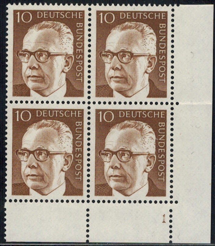 Bund 636 ER-4-er Block r.u. FN 1 mittig waagrecht gefaltet !