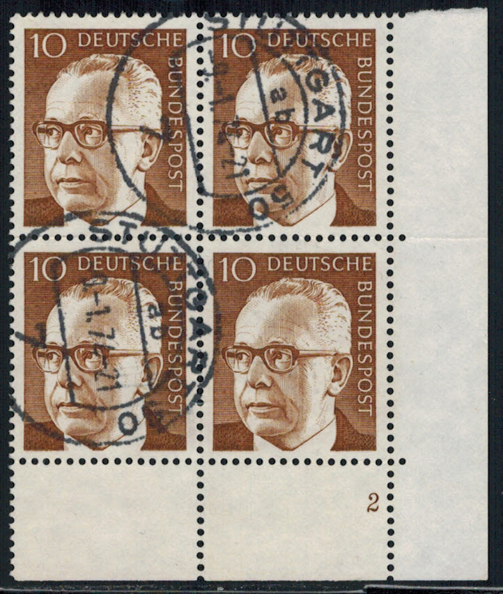 Bund 636 ER-4-er Block r.u. FN 2 gestempelt waagrecht gefaltet !