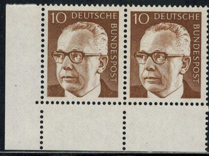 Bund 636 waagrechtes linkes unteres Eckrandpaar postfrisch