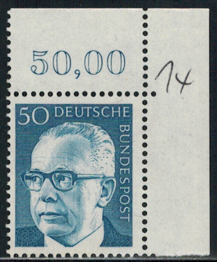 Bund 640 Eckrand rechts oben postfrisch, beschriftet