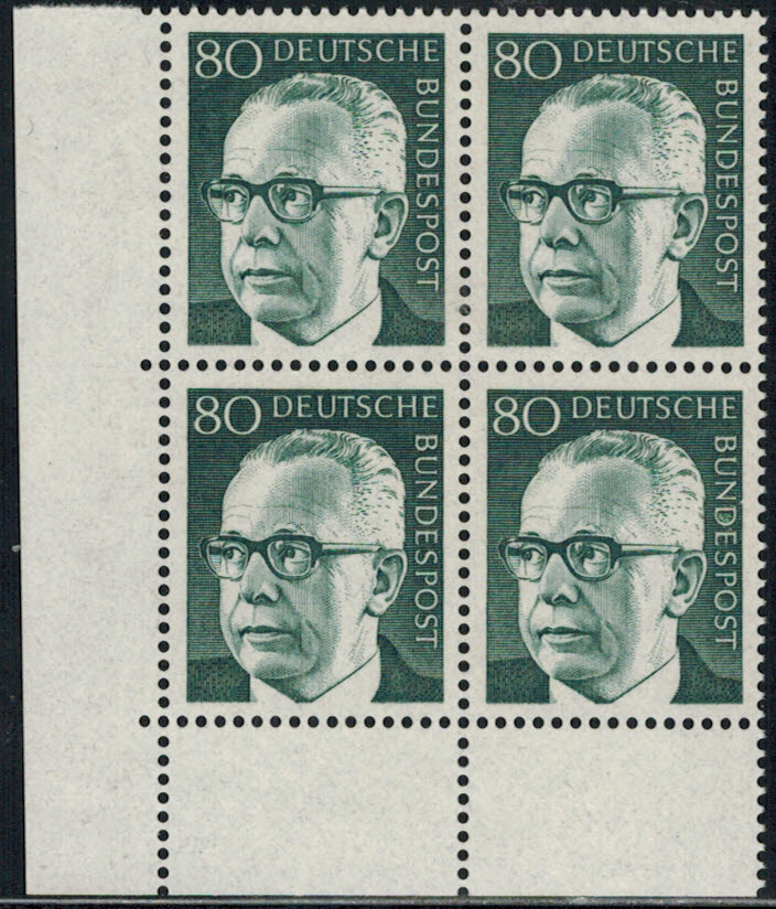 Bund 730 Eckrand 4-er Block links unten postfrisch