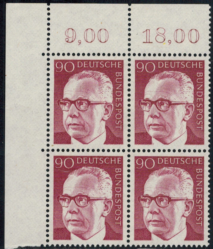 Bund 643 Eckrand 4-er Block links oben postfrischBund 643 Eckrand 4-er Block links oben postfrisch